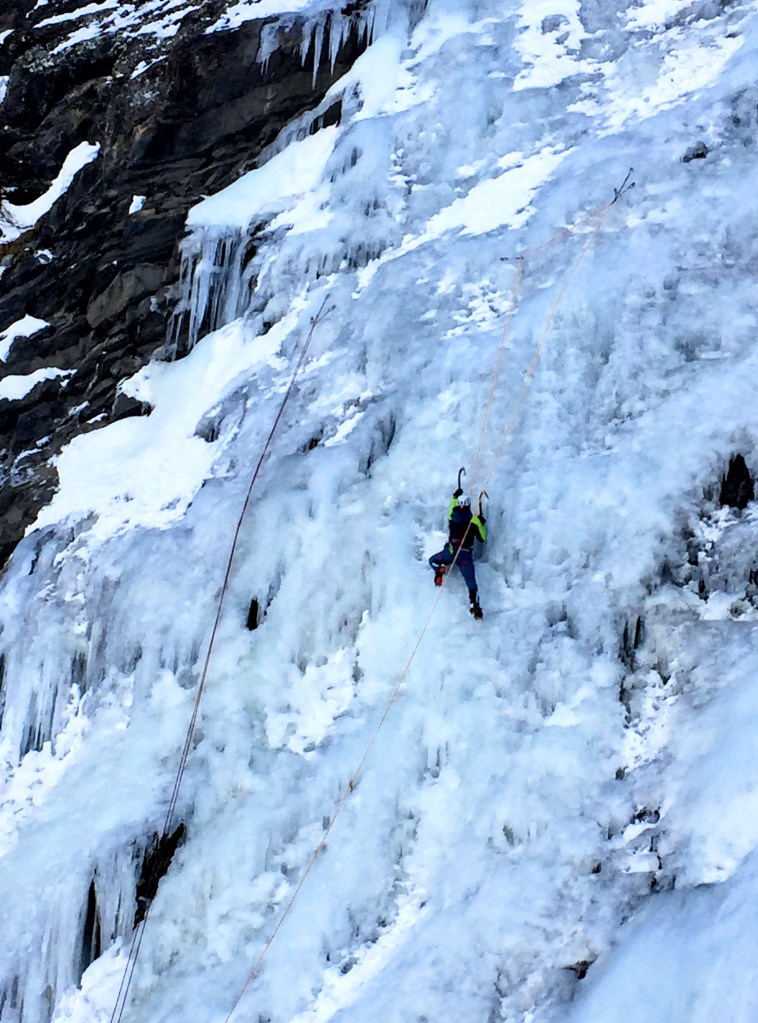 Nous profitons pendant deux jours des ateliers proposés par l’événement pour nous perfectionner à la cascade de glace, discipline dans laquelle nous n’avons chacune que peu d’expérience.