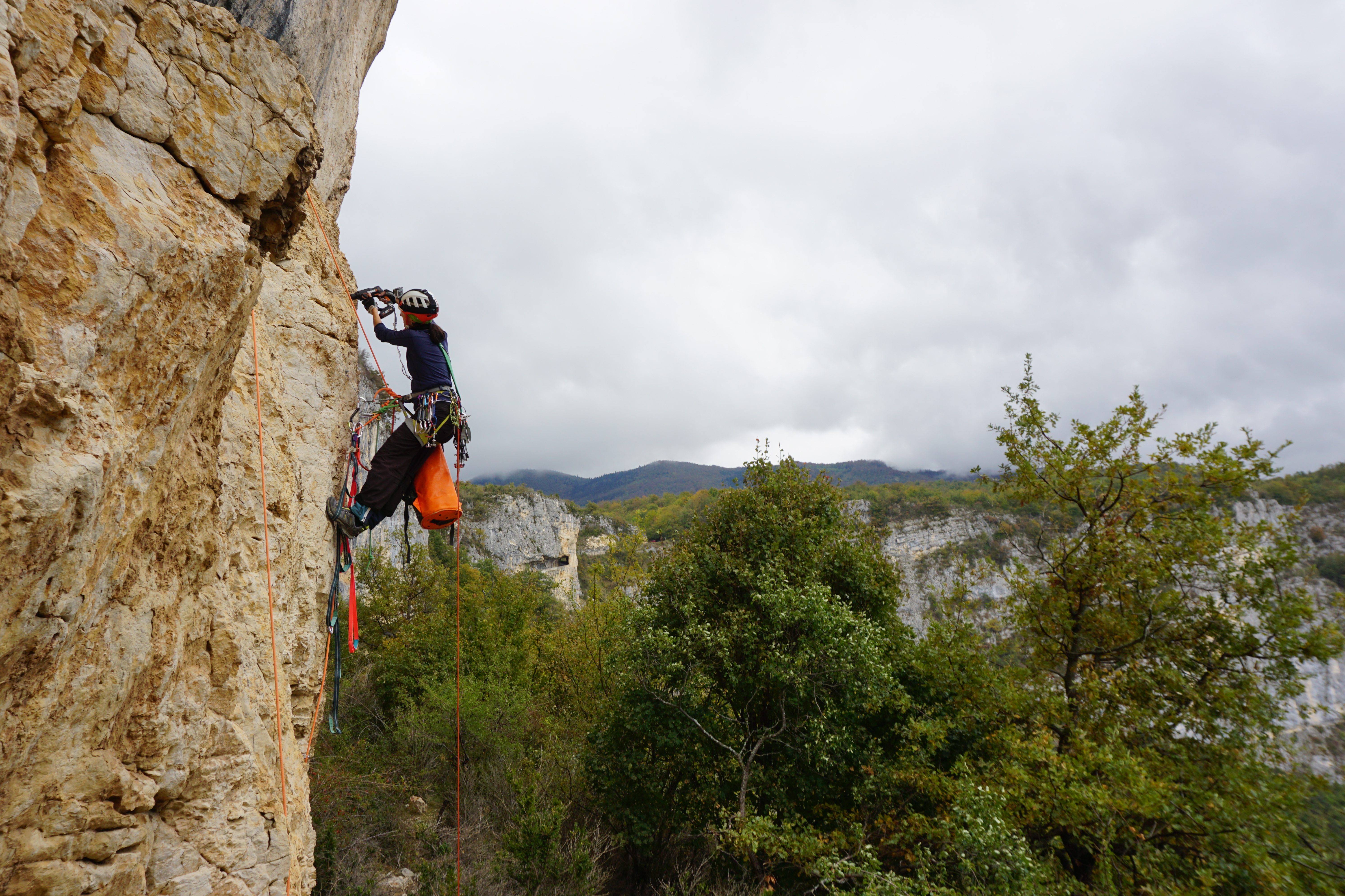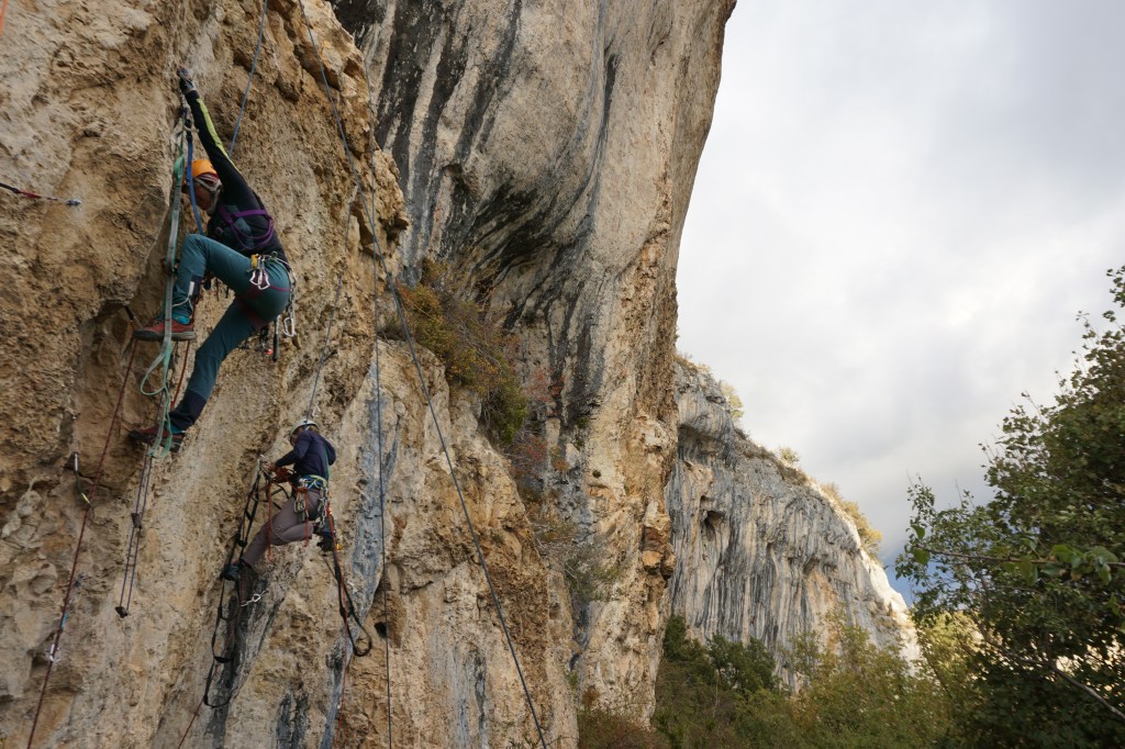 Nous nous prêtons vite au jeu; c’est génial l’artif, il n’y a pas de règle, on tire sur tout ce que l’on peut, tout est permis ! Nous réalisons vite que chaque protection a son émotion ; soulagement et joie pour le piton, concentration et sueur froide sur le crochet goutte d’eau !