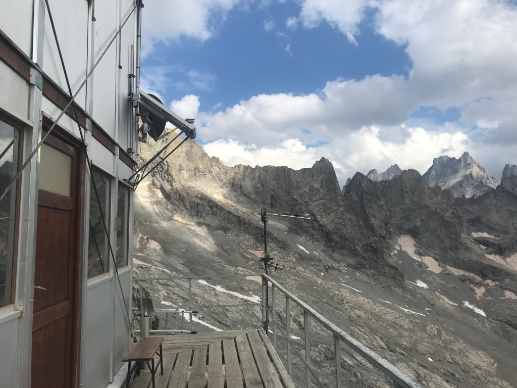 J2: Réveil à 7h du matin, pour monter au Promontoire à 8h. La montée à la fraîche est agréable. Puis un déjeuner au Promontoire avec un bon plat de pâtes et une petite sieste après. Journée plutôt chill !! On révise pour la 10 millième fois le topo. C’est bon, on le connaît comme le bout de nos doigts. Puis on se détend avec un jeu de cartes et certaines une petite bière. On est nombreux au refuge. Plusieurs cordées pour la traversée et 2 cordées qui partent sur la Pierre Allain. On ne sera sûrement pas toutes seules au Grand Pic !