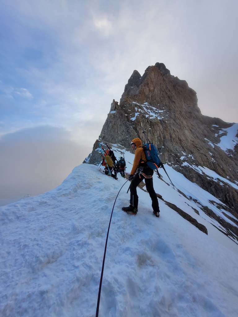 Il ne reste plus qu’une belle descente sur le glacier de l’homme, sur lequel nous nous entraînons à conduire un groupe en sécurité.
