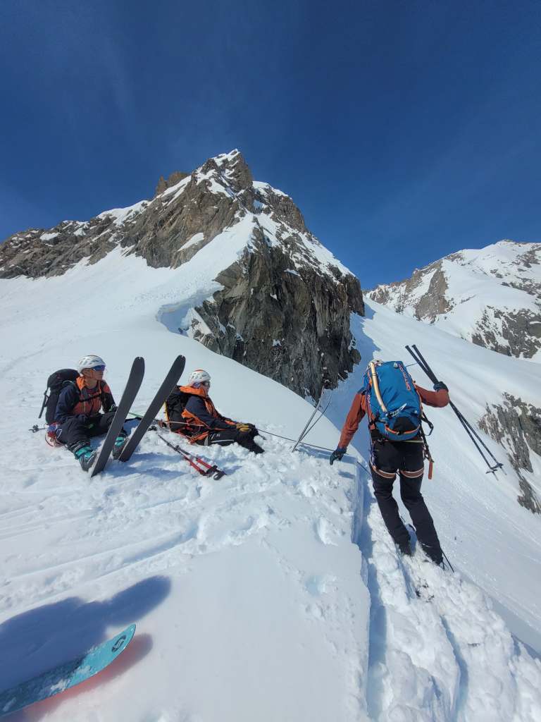 “René pour Rémonde, nous partons en direction du Serret de Savon pour rejoindre le glacier de l’homme”. Sur la même fréquence que Maud, les discussions vont bon train, et nous gardons un contact au talki pour échanger sur les conditions et l’itinéraire puisque nous nous suivrons toute la journée. C’était très sympa de partager la journée avec Maud et ses clients.