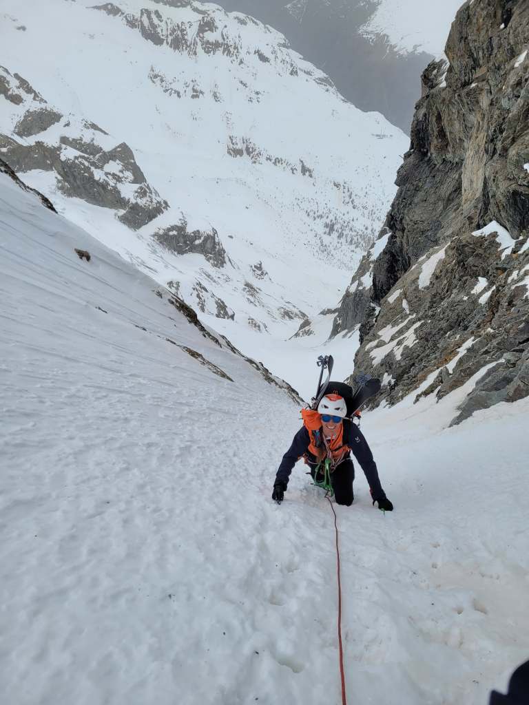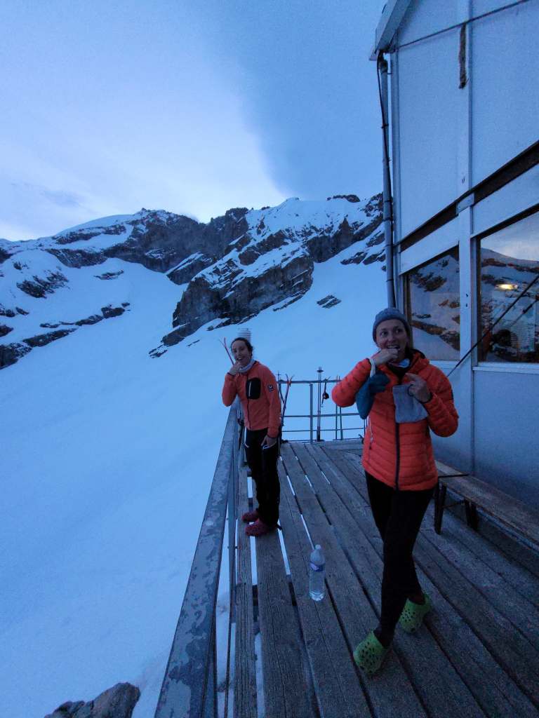 Nous remontons une partie du glacier de l’homme (pour faire une super giga descente :D) jusqu’à un dôme… qui portera désormais le nom du “Dôme de Seb et ses filles”, en référence à notre table au refuge. Notre paparazzi est toujours à fond, ce qui nous fait bien rire. Encore une belle journée!