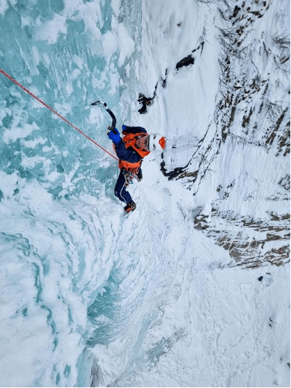 Allez let’s go et on analysera sur place. Départ de nuit à la frontale, trace GPS pour l’approche on est rodé pour ne pas perdre de temps On arrive au pied, il fait encore nuit et Estelle se lancera à la frontale dans la 1 ère longueur. L’aube se lèvera assez vite et nous fera découvrir l’incroyable cigare. 45 min plus tard, 1 puis 2 cordées au pied comme quoi il n’y a pas à tergiverser pour la cascade faut se lever tôt ! On dévore cette cascade, le sourire jusqu’aux oreilles. Les longueurs s’enchainent toutes aussi jolies et nous arrivons là-haut avec le soleil. On s’encourage, on se motive, on déconne. Un bel esprit de cordées qui nous donnent envie d’y retourner encore et encore. On est heureuse et je crois qu’on peut même dire qu’on est autonome : Mission réussie.