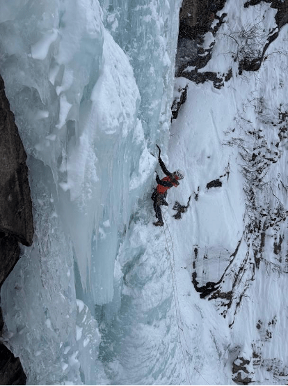 Une vallée incroyable avec des cascades en super condis autant vous dire qu’en sortant de l’ice et de nos 2 jours avec Christophe Moulin nos piolets sont chauds comme la braise enfin pas trop non plus, il ne faudrait pas que tout fonde ^^.