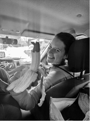 Mais le week-end touche déjà à sa fin. Heureusement on a la banane choco qui nous attend dans la voiture pour nous réconforter.