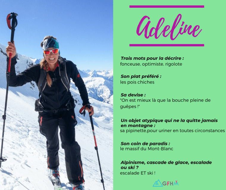 Adeline, c’est la fille dynamique avec plein d’énergie qui après avoir avalé 1600m de dénivelé est capable de faire la fête jusqu’à l’aube ! Pour elle, la montagne est un milieu pour se rapprocher de la nature et des ses compagnons de cordée tout en vivant des sensations fortes. Installée en Haute Savoie elle est Accompagnatrice en Moyenne Montagne.