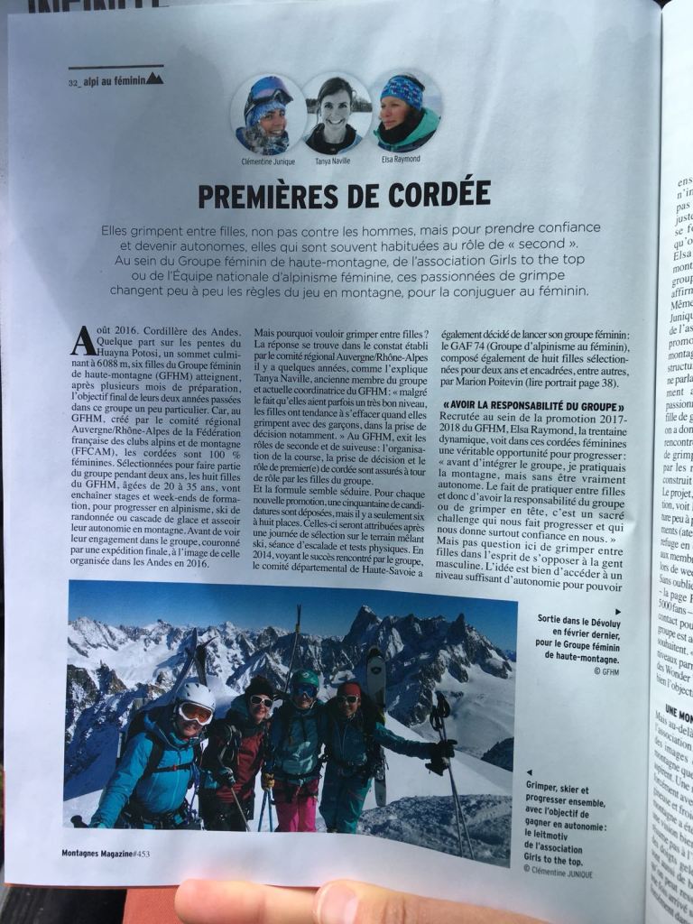 Mai 2018 : Article dans le journal Montagnes Magazine du mois – L’alpinisme au féminin : Premières de cordée