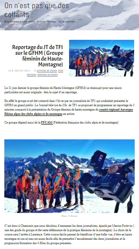 Mai 2019 : Présentation du GFHM et autres groupes féminins sur le site FFCAM
