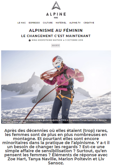 Octobre 2018 : Article dans Alpine Mag « Alpinisme au Féminin »