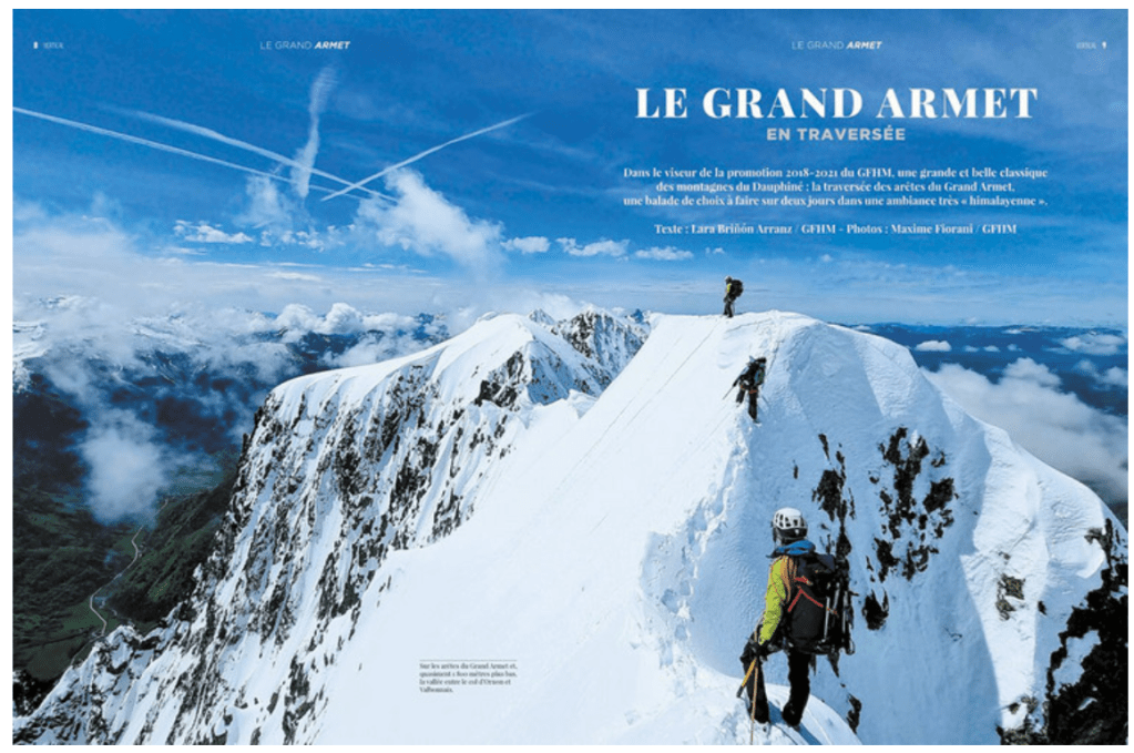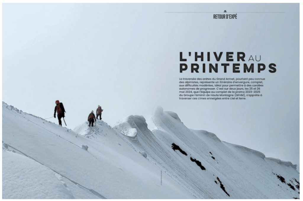 Janvier 2025 : article dans Montagnes Magazines 536, « L’hiver au printemps » sur la traversée du Grand Armet réalisé en mai 2024 par la promotion GFHM 2023-2025