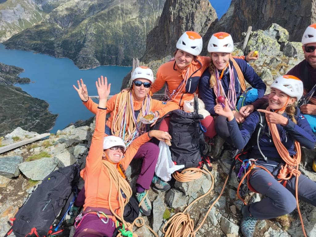 C’était une journée riche en apprentissage pour nous toutes. C’était pour certaines leur 1ère goulotte, pour d’autres les 1ères longueurs en tête avec les 1ers relais à construire en glace. En tout cas, merci à Max pour ce super choix de goulotte qui était en conditions parfaites et adaptée à notre niveau.